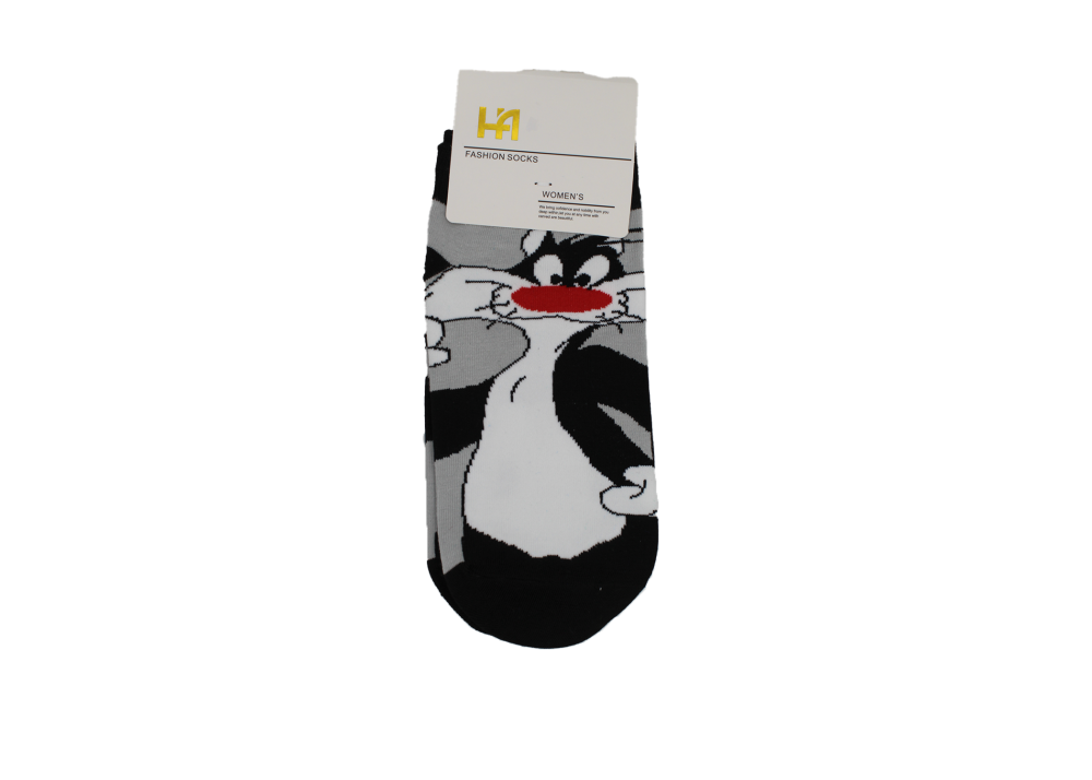 ارتدِ روح المرح والشقاوة مع جورب رمادي بتصميم شخصية القط "سلفستر" الشهيرة من Looney Tunes، لمحبي الستايل البسيط والمميز.